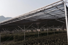 主體骨架采用熱浸鍍鋅,防腐性強。這種溫室結構輕巧、美觀,強度好,棚內空間大,空間利用率高;通過遮蓋,防止了可能的陽光直射,起到降溫作用,并有足夠的陽光使苗木處于正常生長狀況。