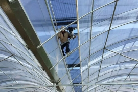 該產(chǎn)品由基礎(chǔ)、框架立柱,頂部拱管三大部分組成。點(diǎn)式獨(dú)立基礎(chǔ),使大棚根基牢固;立柱采用熱鍍鋅方管,大大增強(qiáng)抗風(fēng)抗雪強(qiáng)度;頂部由熱浸鍍鋅鋼管排列成平滑圓弧形,牢固兼美觀。同時(shí)天溝采用2mm厚熱鍍鋅板冷彎成型,容量大,排水及時(shí);頂部天溝處和大棚四周均設(shè)置搖膜通風(fēng)系統(tǒng),是大棚內(nèi)部氣流通暢。此產(chǎn)品可根據(jù)需要實(shí)現(xiàn)相關(guān)配套設(shè)施,以便達(dá)到更理想的效果,如外遮陽(yáng)系統(tǒng)、內(nèi)遮陽(yáng)保溫系統(tǒng)、降溫系統(tǒng)、加溫系統(tǒng)、噴滴灌系統(tǒng)等。