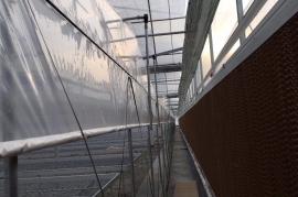 該產(chǎn)品由基礎、框架立柱,頂部拱管三大部分組成。點式獨立基礎,使大棚根基牢固;立柱采用熱鍍鋅方管,大大增強抗風抗雪強度;頂部由熱浸鍍鋅鋼管排列成平滑圓弧形,牢固兼美觀。同時天溝采用2mm厚熱鍍鋅板冷彎成型,容量大,排水及時;頂部天溝處和大棚四周均設置搖膜通風系統(tǒng),是大棚內(nèi)部氣流通暢。此產(chǎn)品可根據(jù)需要實現(xiàn)相關配套設施,以便達到更理想的效果,如外遮陽系統(tǒng)、內(nèi)遮陽保溫系統(tǒng)、降溫系統(tǒng)、加溫系統(tǒng)、噴滴灌系統(tǒng)等。