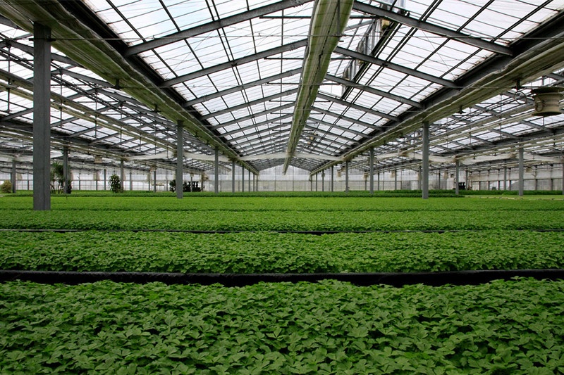 文洛式玻璃溫室為一跨三尖頂、雙坡面小屋頂桁架結(jié)構(gòu)、多雨槽、具有美觀、吊掛能力強(qiáng)、透光性好、空間大、機(jī)械性能強(qiáng)等優(yōu)點(diǎn)。